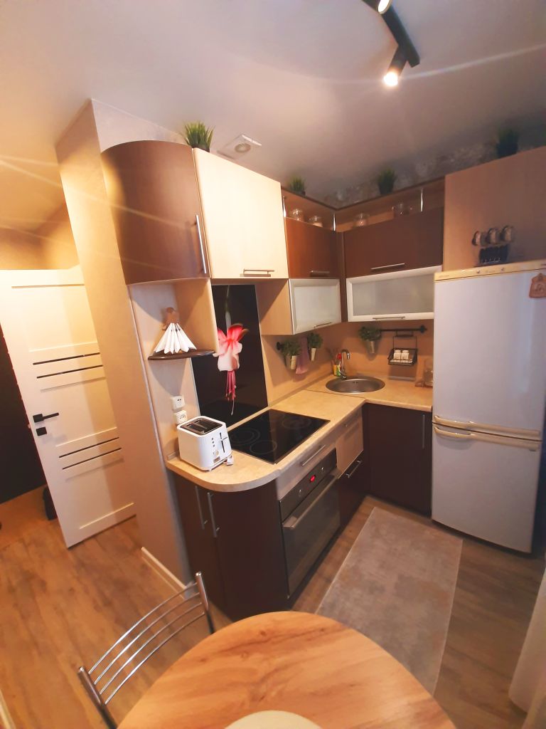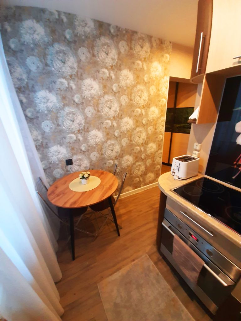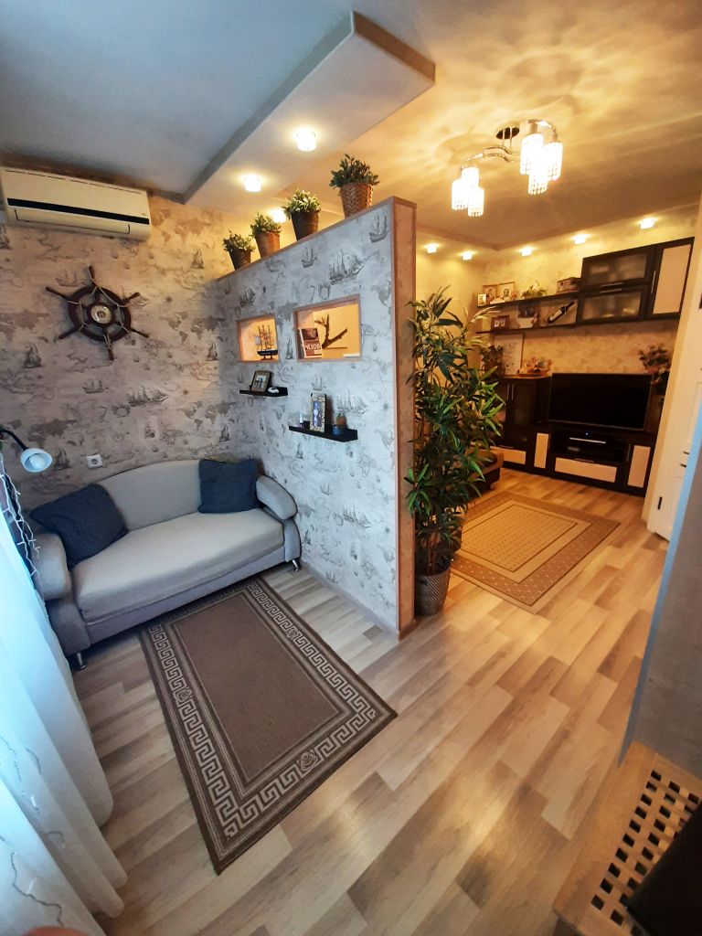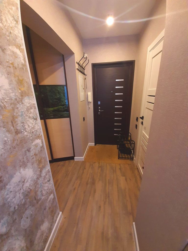 Квартира светлая, теплая, уютная. В квартире сделан отличный ремонт: пол на кухне и прихожей - кварцвинил, в комнате ламинат. Остается кухонный гарнитур со встроенной варочной поверхностью, встроенный шкаф в прихожей, кондиционер в комнате.